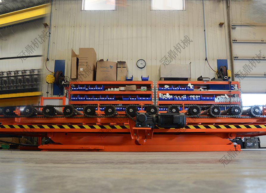 升降完成后物料通過滾筒自動輸送至下一工位,節(jié)省傳統(tǒng)升降機需二次搬運的時間,效率提升50%以上。